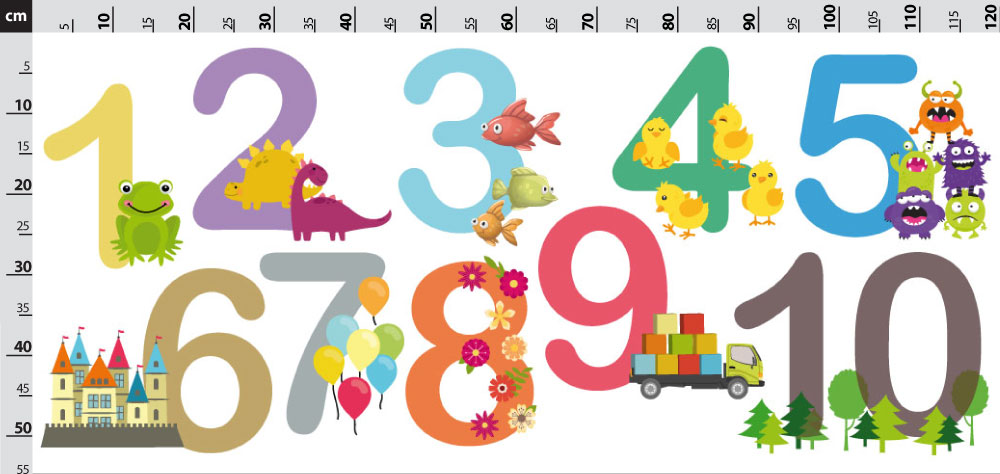 Čísla farebné - nálepka na stenu