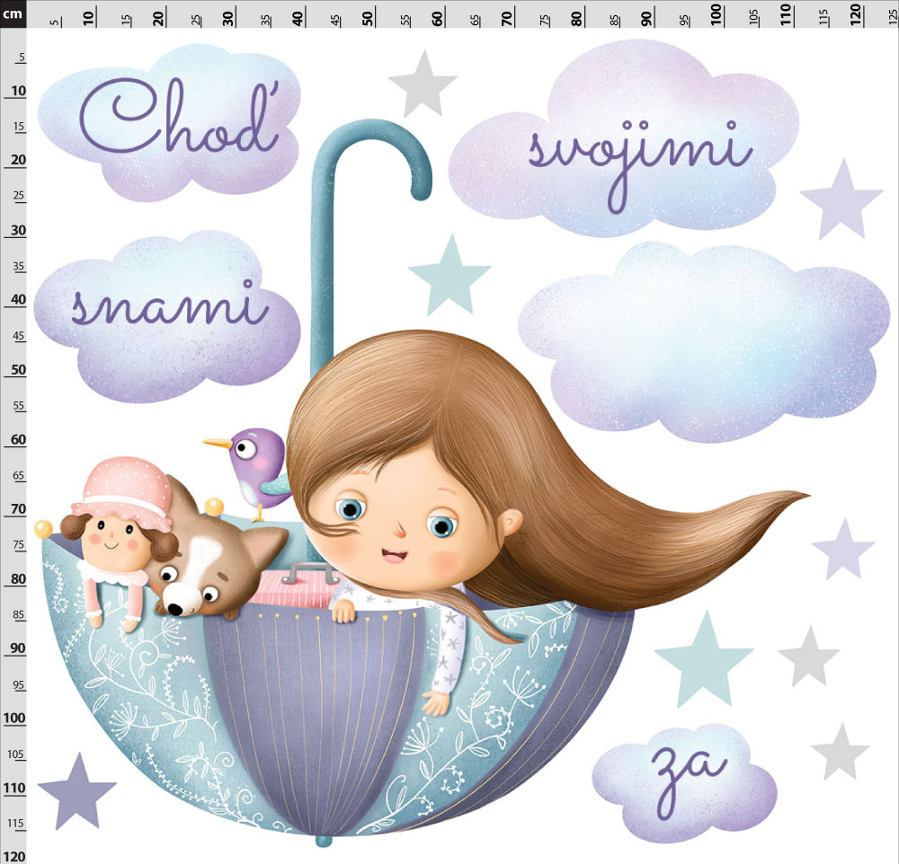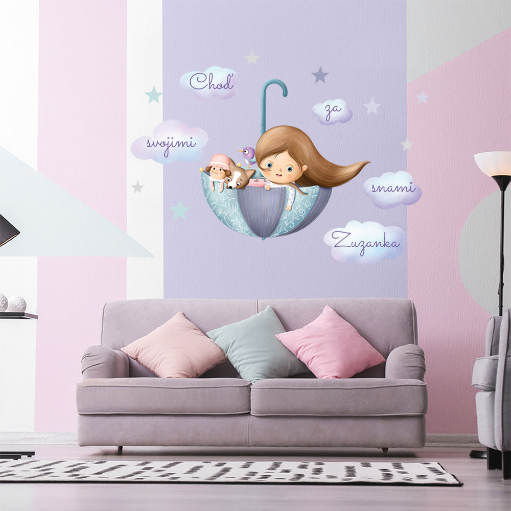 Dievčatko v dáždniku s menom - nálepka na stenu