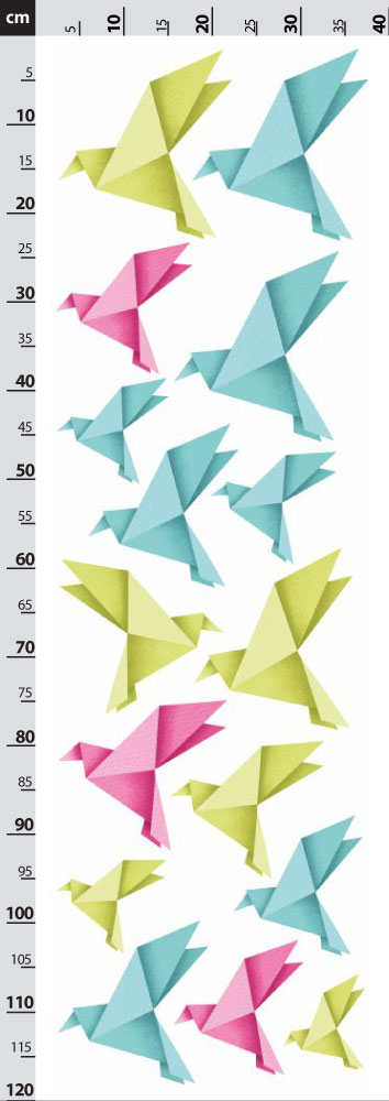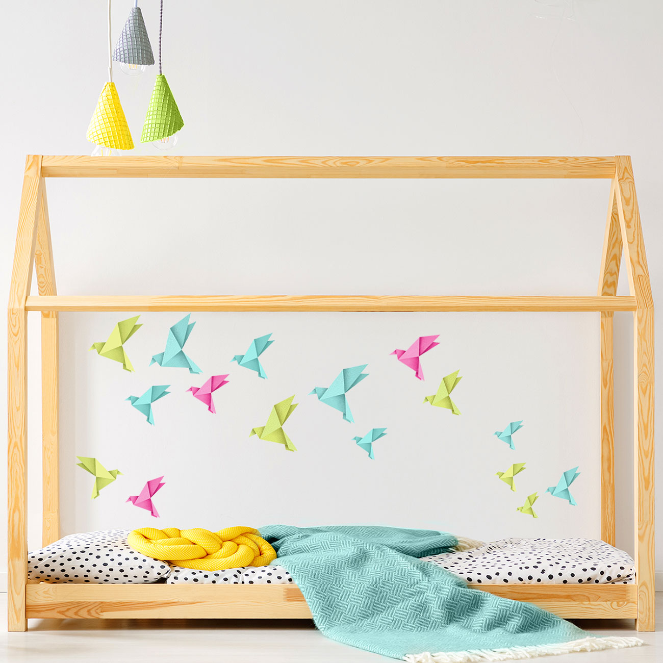 Origami vtáčiky - ružové, zelené a modré - nálepka na stenu